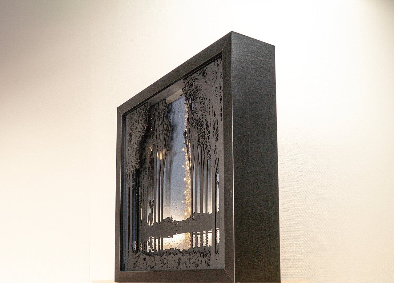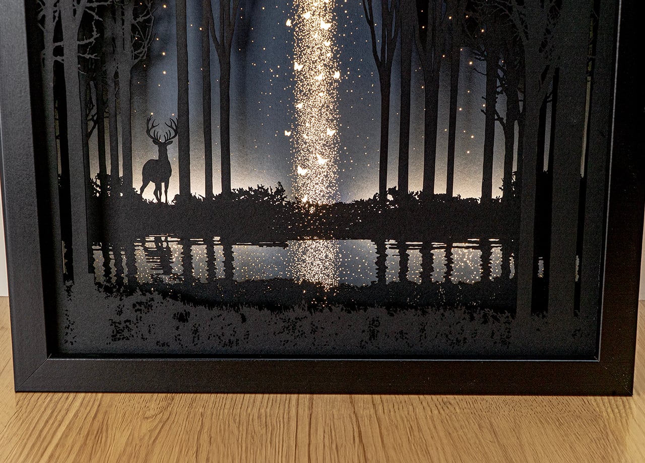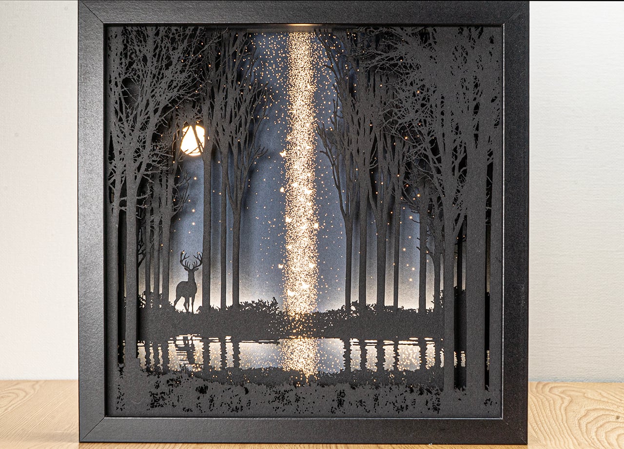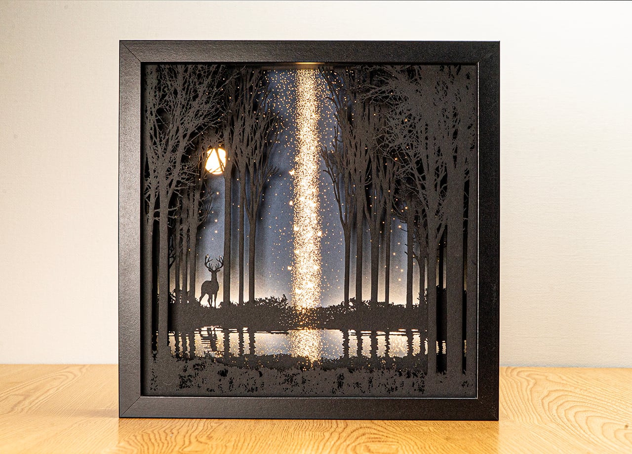 ●この作品は緻密にカッティングしたシルエットがLEDの光で浮かび上がる仕様です。