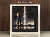 作品の物語:奥深い森の泉に星の雫(しずく)が降り注ぎ、光で浮かび上がる。神秘的な光景を繊細なシルエットで表現したライトアート作品。