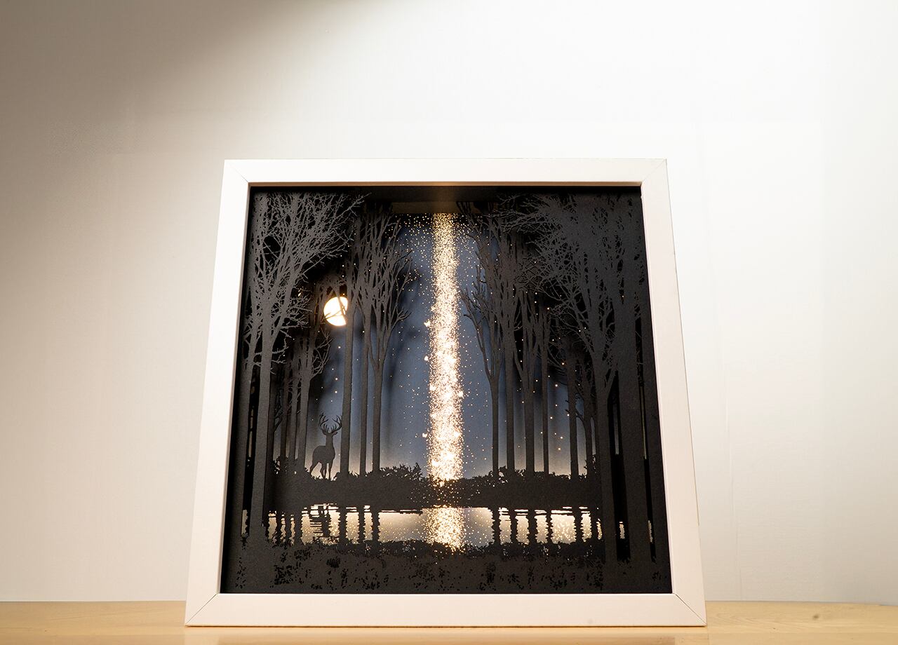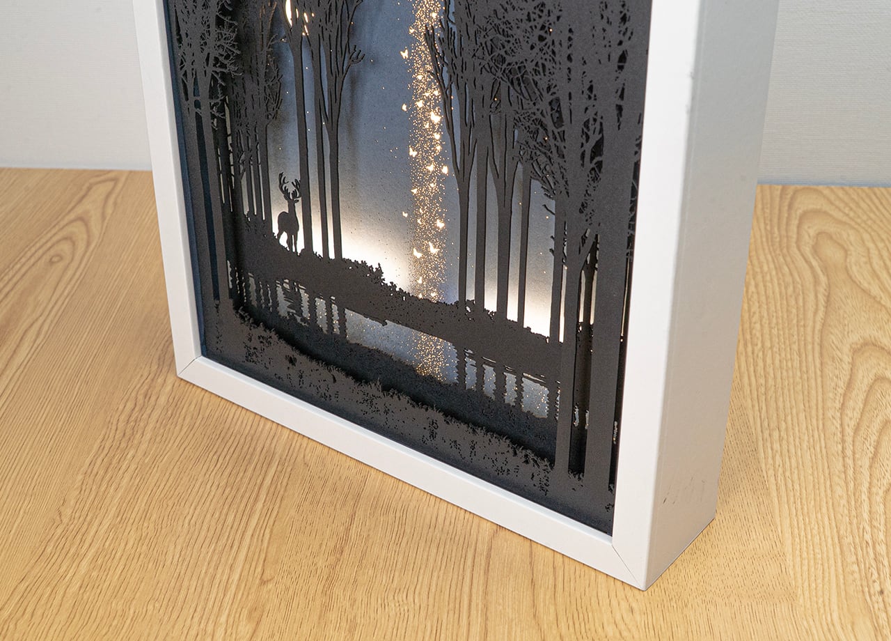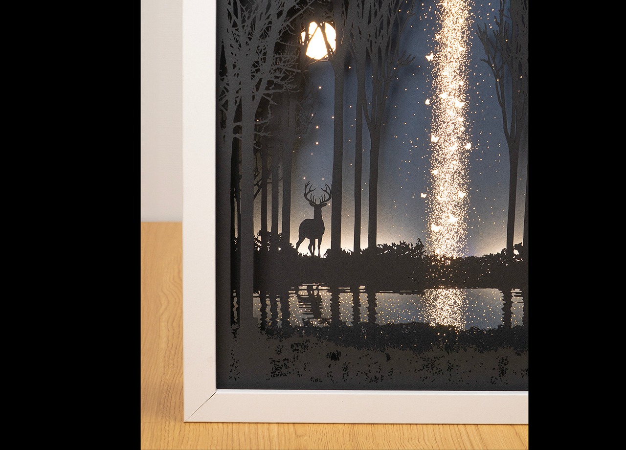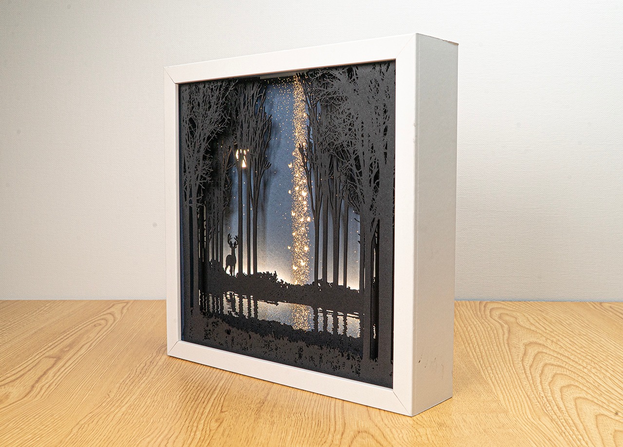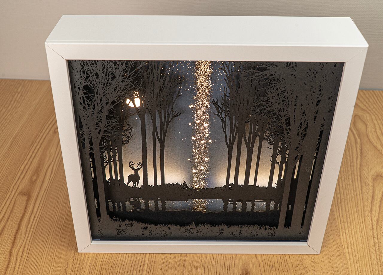 ●この作品は緻密にカッティングしたシルエットがLEDの光で浮かび上がる仕様です。