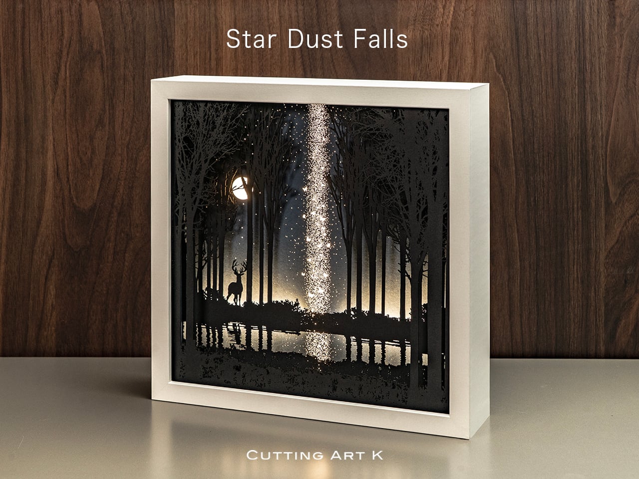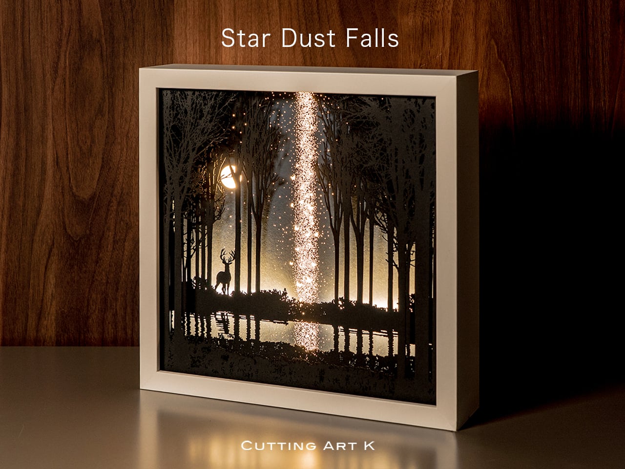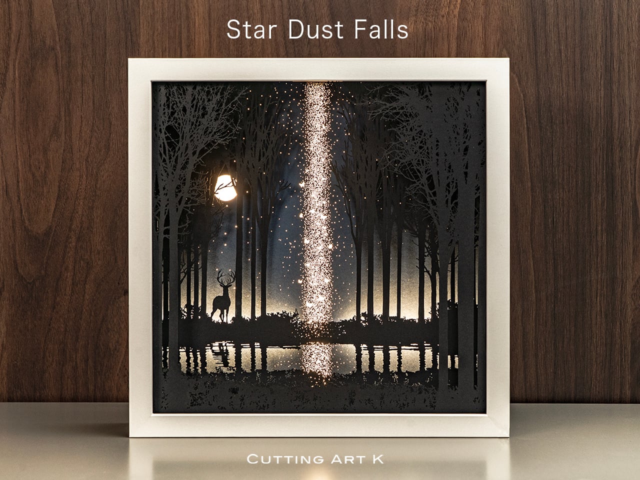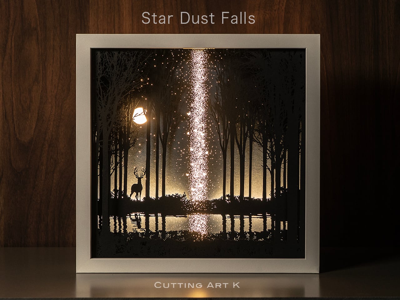 ●この作品は緻密にカッティングしたシルエットがLEDの光で浮かび上がる仕様です。